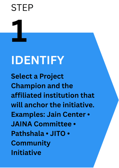 Champions will present the proposal at the Jain Leadership Forum in Chicago. The project must have a JCNA or JONA affiliation. Funding will be provided to/through the JCNA or JONA. Projects and the amount of funding will be selected by a project team based on donors and feedback from the Jain Leadership Forum.